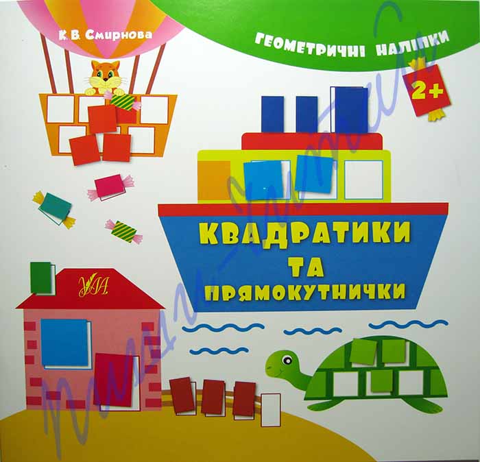 «Геометричні наліпки» – серия очень красивых книжек для малышей от 2-х лет. Яркие красочные картинки следует дополнить наклейками различных геометрических форм. Выполняя несложные и веселые задания детка легко запомнит названия фигур, научится узнавать их на рисунках и среди окружающих предметов, различать по цвету и форме. Задания в книжке – на украинском языке. Обратите внимание, что на картинках контур недостающей фигуры нарисован тем же цветом, что и соответствующая наклейка. В книжке «Квадратики та прямокутнички» клеим квадратные и прямоугольные наклейки разных цветов и размеров на картинки: окошки в вагонах поезда, панцирь черепашки, окна каюты парохода, полотенца, окна и двери домов, конфеты, новогодние подарки, корзина воздушного шара (всего 46 наклеек). Желаем успехов!