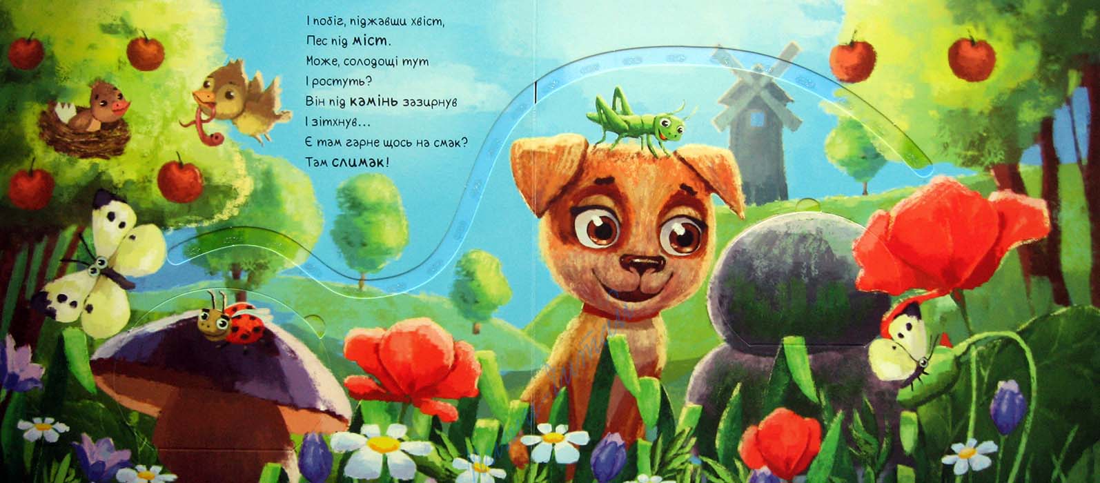 Серия книг «Книжка з доріжкою» для самых маленьких читателей – с тактильной дорожкой и окошками на каждой странице: открывайте их все и узнайте, кто же там спрятался. Книжка «Допитливе цуценя» - это смешная история про маленького щенка, которому очень хотелось съесть чего-нибудь вкусненького – шоколада или конфет, например. Он искал их повсюду, но нигде не нашел. И сколько же было радости, когда, вернувшись домой, в своей мисочке он нашел то, что гораздо лучше конфет! Прекрасно иллюстрированные книжки серии станут одними из любимых книг Вашего малыша, а благодаря плотным картонным страницам будут развлекать его долго-долго. Книга на украинском языке, на русском – под заказ.