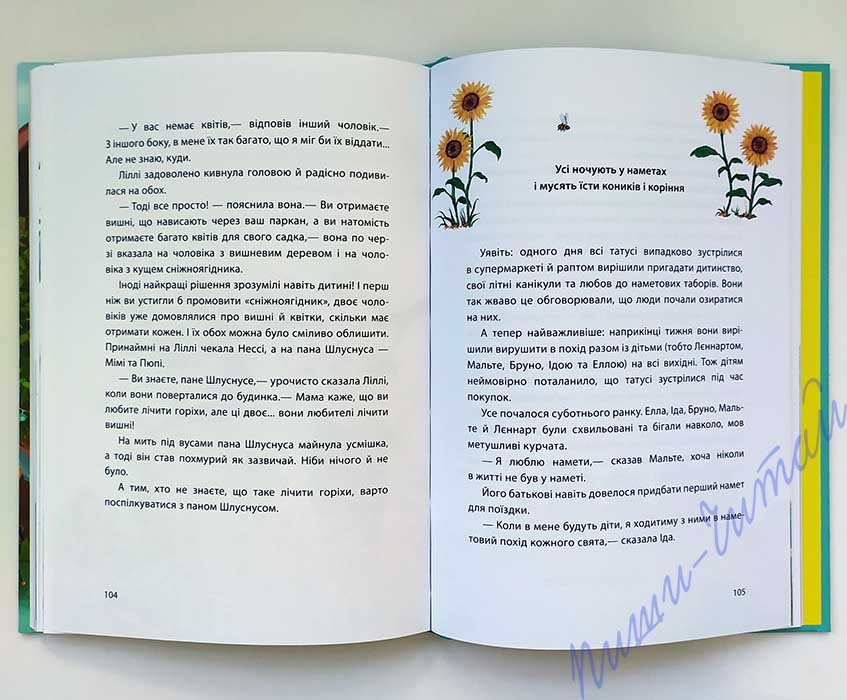 Зустрічайте другу книгу серії «Рік на Бузиновій вулиці»! Іда, Лєннарт, Мальте, Елла та Бруно мешкають на Бузиновій вулиці,7. І вони не уявляють кращого місця, де щодня траплялися б такі самі захопливі події. Коли вони разом, у них завжди виникають круті ідеї, а разом друзі майже повсякчас. Зрештою, вони можуть заходити один до одного, коли їм заманеться. Потрібно лишень піднятися вгору або спуститися вниз сходами. Літо – це час канікул, веселого і корисного відпочинку. П’ятеро друзів збирали і ласували полуницею, відвідали музей просто неба, каталися на поні і плавали у басейні, влаштовували бої на водних пістолетах, взяли участь у незвичайному поході-квесті з навігатором, влаштували циркове шоу для батьків і навіть вигадали щось таке неймовірне, як пісочний пляж на балконі! Але з усіх подій літа були й особливі. Під час святкування закінчення навчального року всі помітили, що їх сусіда пана Шлуснуса декілька днів ніхто не бачив, і вже почали сумувати за його постійними скаргами і зауваженнями. Діти припустили, що його викрали або посадили за грати, адже колись він був поліцейським. Але виявилось, що пан Шлуснус захворів, да так сильно, що вже ні на що не скаржився; а так як він мешкав сам, то всі сусіди, а найактивніше – діти, кинулися йому на допомогу: купили ліки, продукти, заварили чай, і навіть погодували його котів і почистили їм туалет. А коли наступного дня прийшли його провідати, а пан Шлуснус зустрів їх зауваженням – діти не образилися, а посміхнулися, тому що це означало, що пану Шлуснесу стало легше. Під час цих канікул трапилися події, за які слід дякувати батькам, адже завдяки їх згуртованості, зацікавленості і активності вони і відбулися. Літній вуличний фестиваль – невід’ємна частина літа на Бузиновій вулиці. Величезні столи з наїдками, прості, але кумедні, ігри на свіжому повітрі, і навіть концерт: Іда та Елла виконали чудовий музичний твір на флейтах, а тато маленького Оллі, справжній музикант, виконав багато пісень і акомпанував собі на гітарі і гармоніці. Ввечері пан Кузе ввімнкнув гарні ліхтарі, а тато Мальте й Елли влаштував справжній феєрверк. Оце було свято! Здавалось, що саме цей день стане найособливішим за все літо! Але потім батьки вигадали разом з дітьми влаштувати кінотеатр просто у дворі будинку і все там було по-справжньому: і великий екран, і м’які кресла, і навіть попкорн, - і це було дивовижно. А одного разу татусі наших героїв раптово зустрілися в супермаркеті і стали згадувати свої літні канікули та любов до наметових таборів. І спогади були такими приємними, що їм захотілося знову піти в похід. І певна річ, з дітьми. Усе, за що можна любити літо, є в цих добрих історіях про справжніх друзів. Улюблені цитати Пиши-Читай з книги «Літо на Бузиновій вулиці»: «Я зараз можу луснути від захвату від літа!», «Гм, це завжди складно, коли батьки запитують, що ти собі думав», «Під час довгих канікул може забракнути ідей для розваг», «Я щодня росту вже чотири роки поспіль, але досить замаленька!», «Іноді найкращі рішення зрозумілі навіть дитині!», «Що може бути краще, ніж усім разом у темряві на безлюдному острові розповідати страшні історії?»